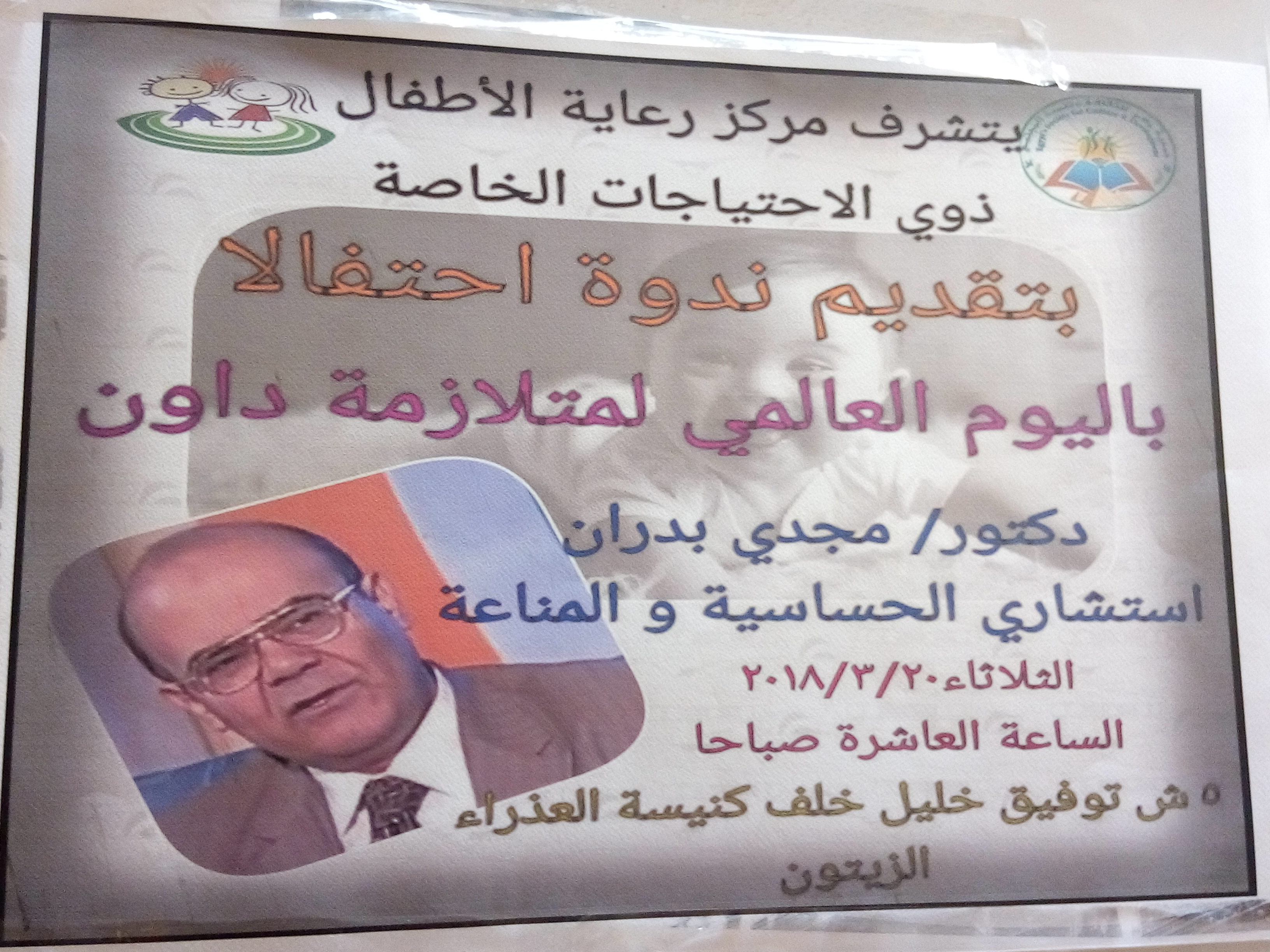 الإحتفال باليوم العالمى لمتلازمة داون بمركز رعاية الأطفال ذوى الاحتياجات الخاصة
